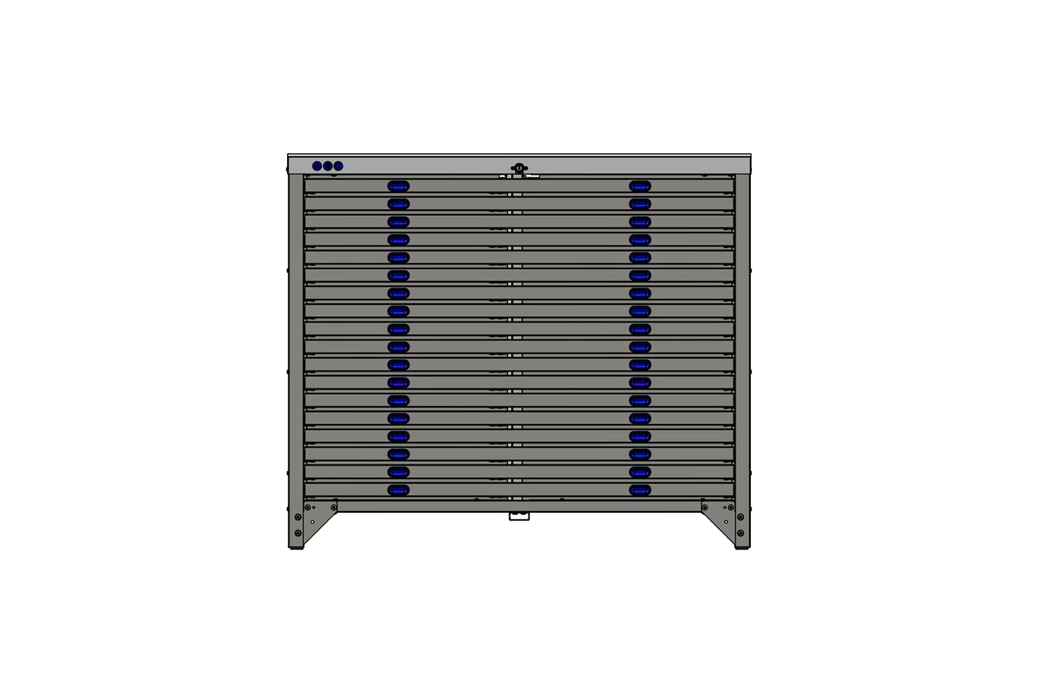 La gama disponible de muebles horizontales dispone de cajones con una altura de 35 mm. Esto permite almacenar todo tipo de troqueles sin que se superponen.