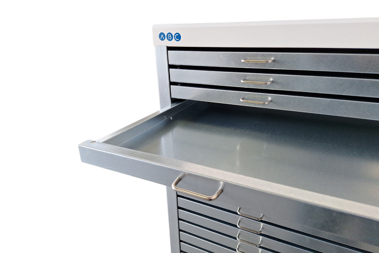 Tutte le cassettiere sono in acciaio zincato, robuste e durature. Il ripiano superiore è in acciaio verniciato bianco, resistente per ogni tipo di lavorazione.